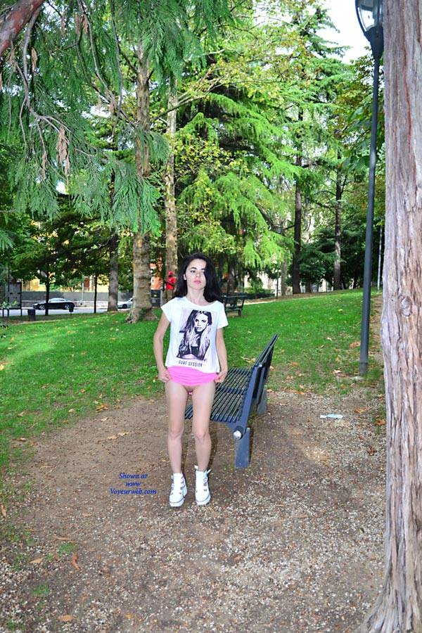Brunette Flashing Public Exhibitionist Public Place Shaved